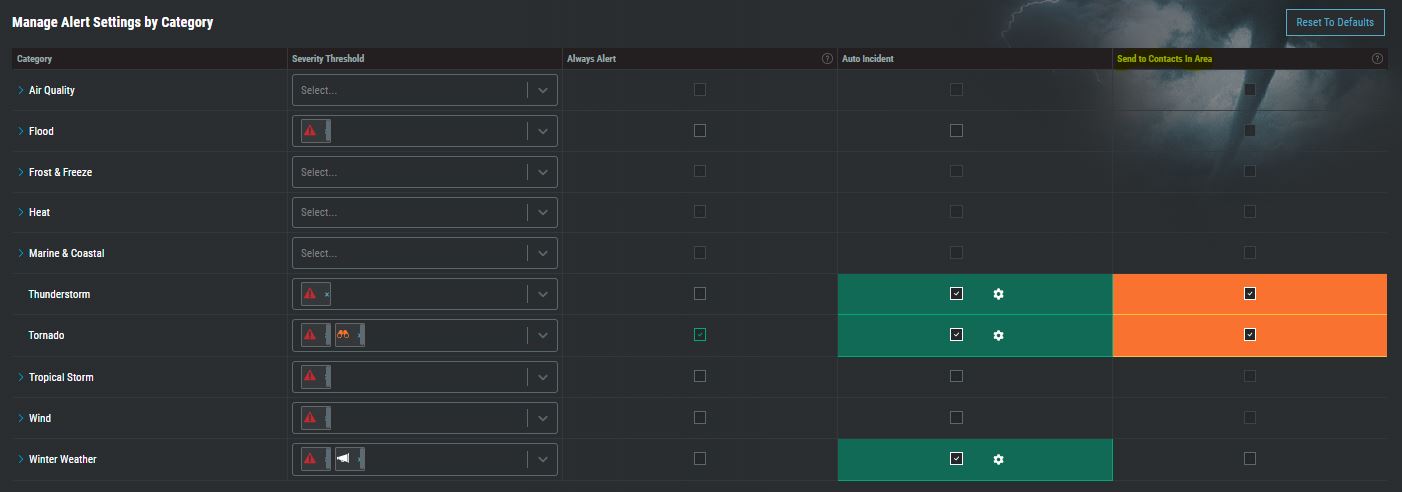- Set what you want to be alerted on (e.g., Tornado warnings and watches)