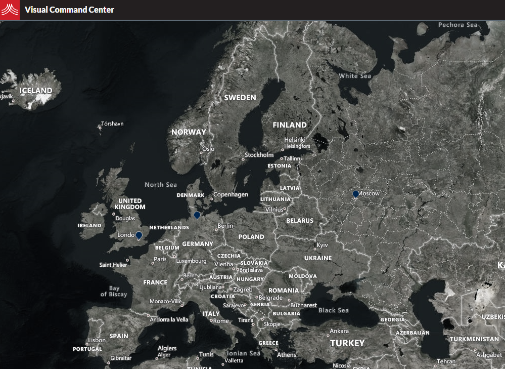 To see individual assets displayed as points for an area, zoom in until there are less than 1,000 assets in view.For example, this zoomed in view of Europe shows points for the few assets located there: