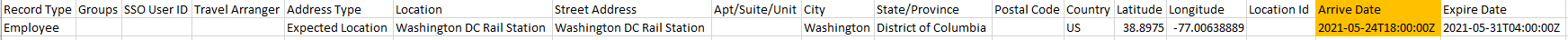 In Everbridge Suite, on the Universe tab, the arrival date for a traveler is displayed in the UTC time zone. The example below is from a polygon created on the map with a Contact download.