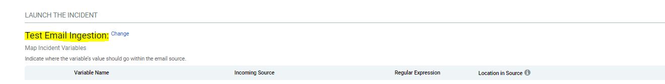 - Find the name of the template used for the specific Email Ingestion under the Launch The Incident section of the Email ingestion setup: