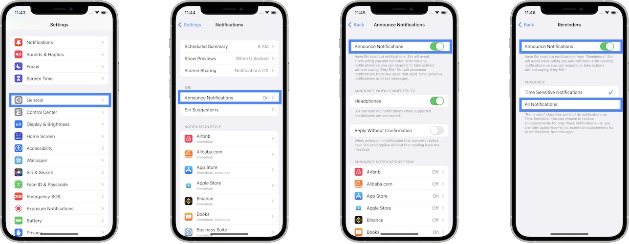Announce Notifications. Some iPhone users have reported that enabling this feature allows notification push alerts to work again. To turn it on, in Settings > Notifications, tap Announce Notifications and turn it ON. Optionally, scroll down to the Everbridge Mobile App and enable Announce Notifications.