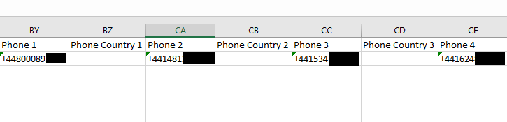 In the example below we have four phone numbers each associated with a different country that starts with dial-in code +44.