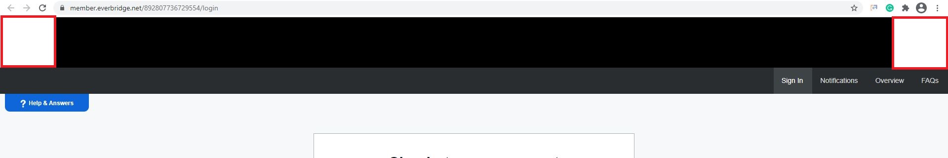 Blank white spaces appear on either side of the agency logo in the Everbridge member portal banner.
