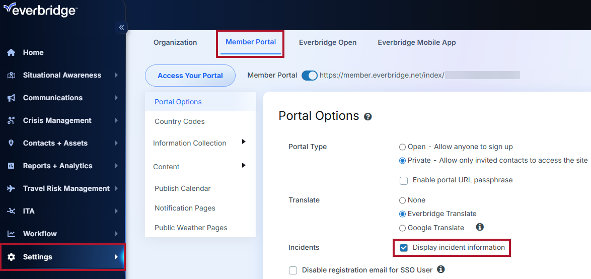This article provides information on the Displaying Incident Notifications setting available for the Everbridge Member Portal.
