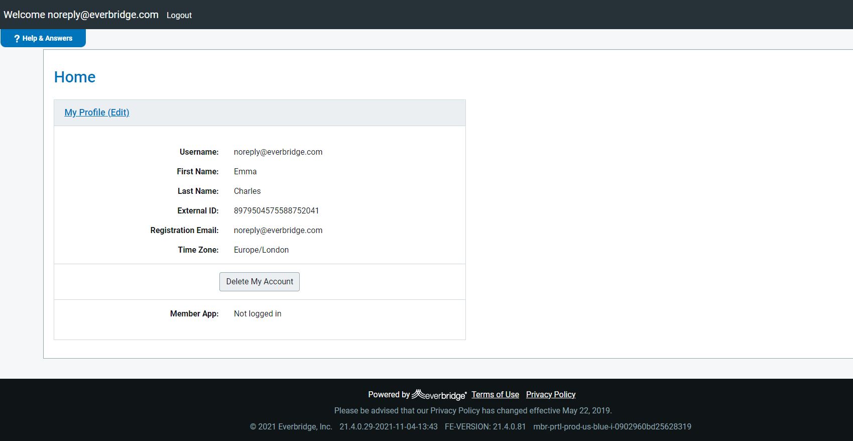- Under the My Profile (Edit) section, select the Delete My Account option.