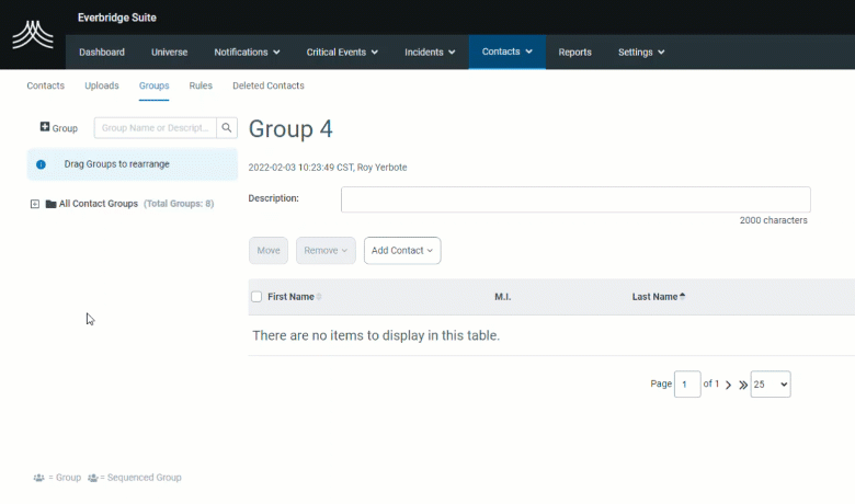 How to drag and drop groups and subgroups in Everbridge Suite.