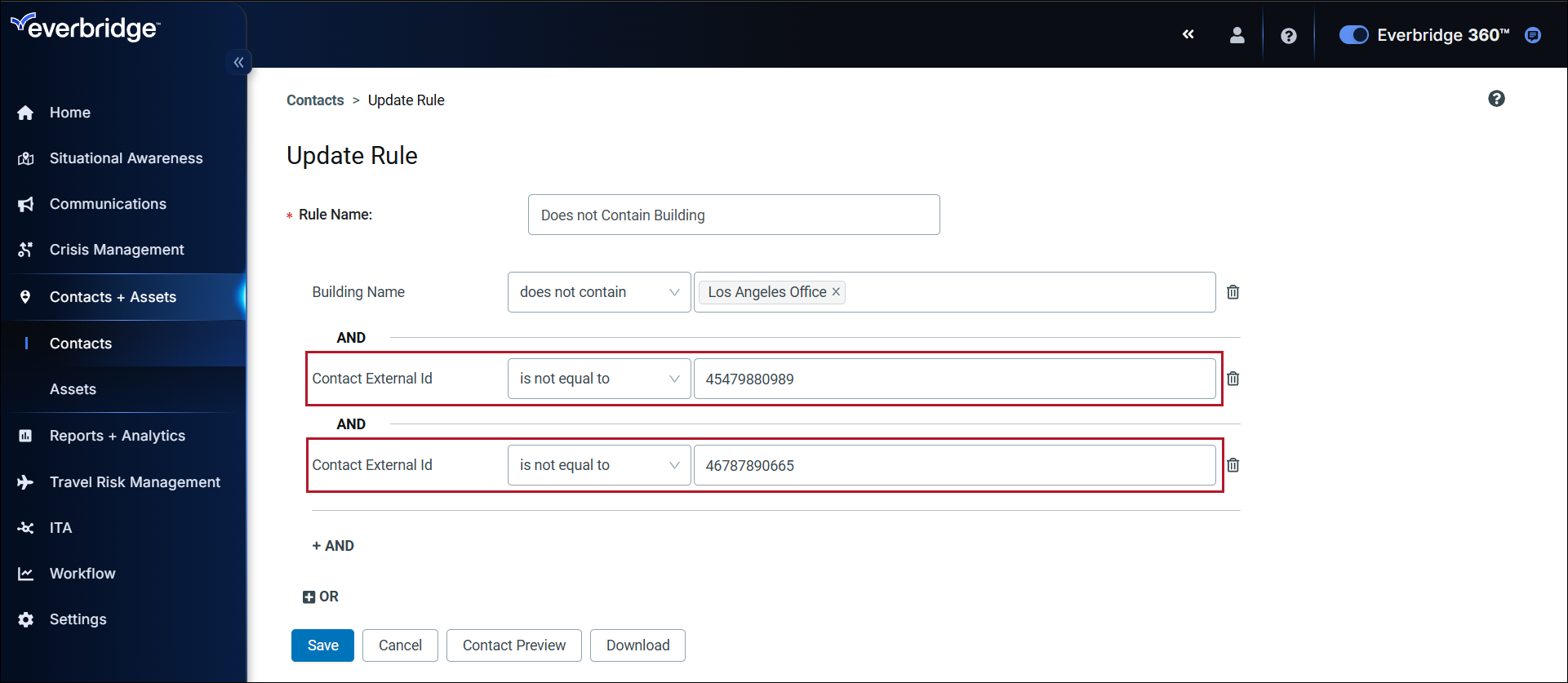 A rule or advanced search that uses a "does not contain" query with building names has unexpected results. For example, you may want to send a Notification to anyone not in a certain building, but people inside the building are still receiving the Notification.