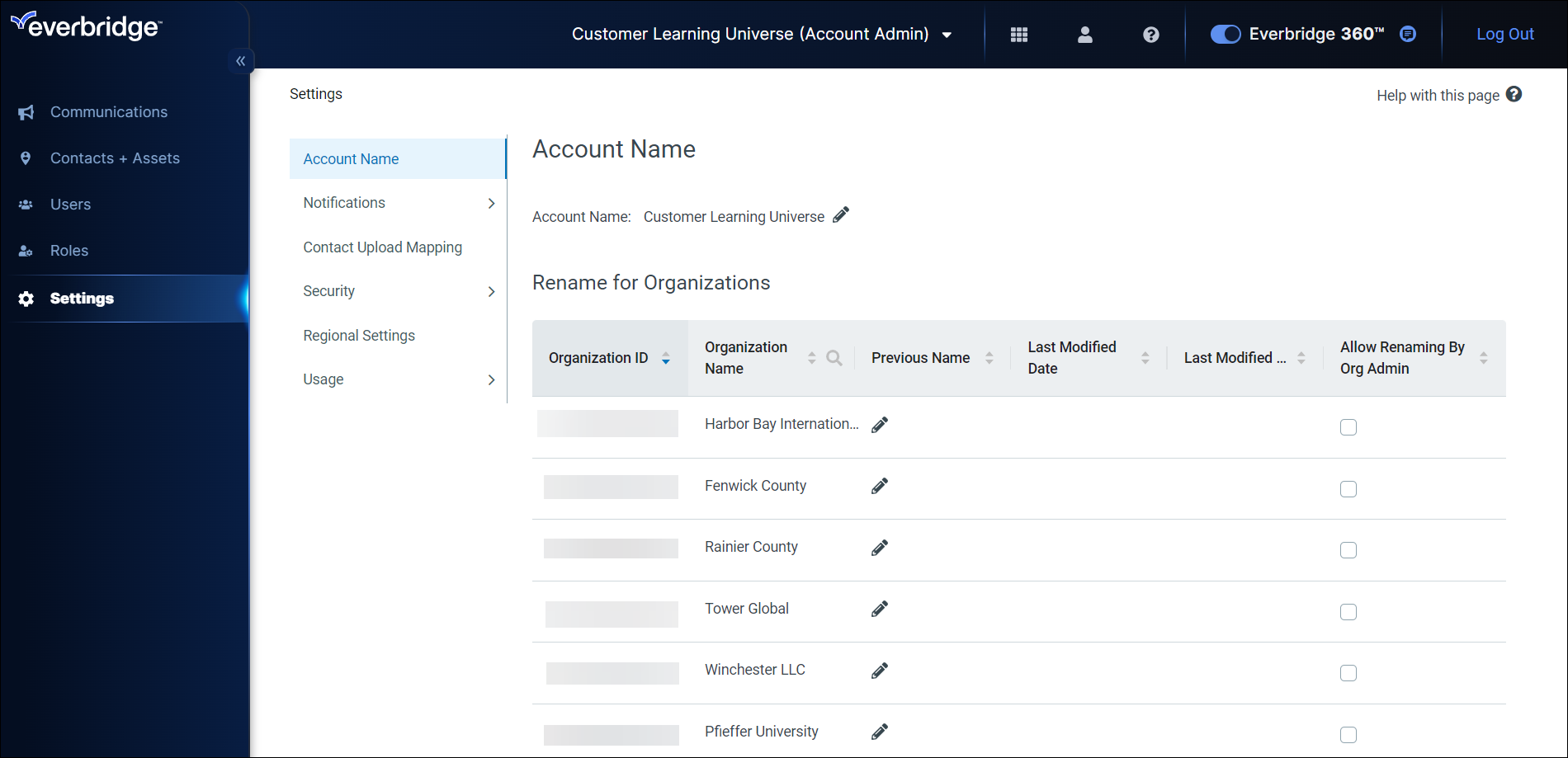 | Rename Account or Organization |