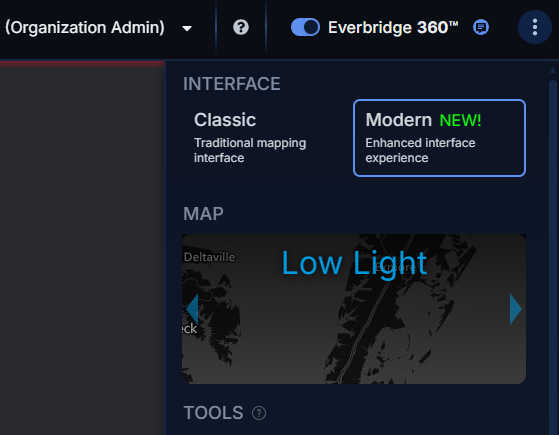 Available exclusively in Everbridge 360, the modern interface can be enabled through the three-dot menu located in the upper-right corner of the operator’s console. Users can seamlessly switch between the Classic and Modern views at any time using the same menu options.